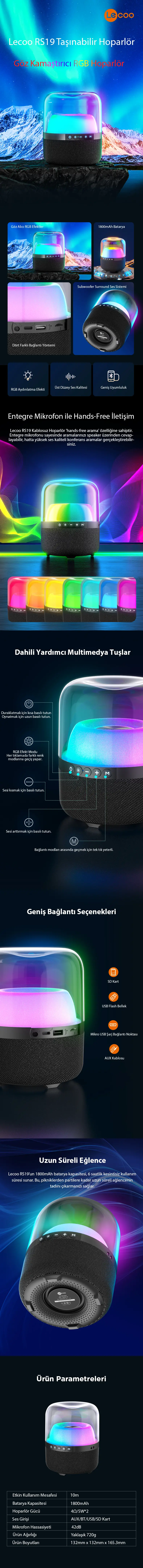 Taşınabilir Şıklık ve Güç: Lecoo RS19 Siyah Taşınabilir Hoparlör